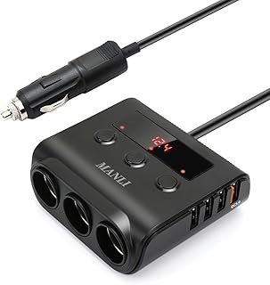 MANLI Adaptateur allume-cigare Quick Charge 3.0, 12 V/24 V, chargeur de voiture 3 prises, répartiteur allume-cigare 110 W, 4 ports USB et interrupteur séparé, voltmètre LED pour voiture