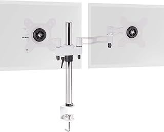 Duronic DM352 WE Support de 2 moniteurs à Pince pour Bureau - Hauteur Ajustable - Rotatif/Inclinable/Pivotable - Compatible avec moniteurs LCD/LED VESA 75/100 - Potence et Bras en Aluminium