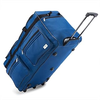 Grand Sac à roulettes 85L Sac de Voyage Sac de Sport avec Cadenas Poignée télescopique 2 Roues - Sac Trolley - Bleu foncé