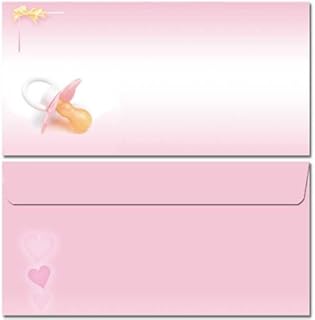 Enveloppes à motifs SUCETTE DE BÉBÉ (ROSE), 10 DIN LONG (110x220 mm) enveloppes sans fenêtre, avec bandes autocollantes