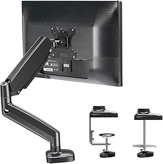 MOUNTUP Support de bureau pour écran, bras pour écran réglable à vérin à gaz, support VESA avec pince en « C », base de montage passe-câble, support d’écran d’ordinateur pour écran jusqu’à 27″