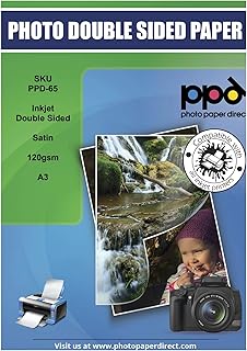 PPD 100 x A3 Papier Photo Double Face Satiné, Jet d'Encre, 120g , Pack Economique 100 Feuilles Papier Photo pour Flyers & Brochure PPD-65-100