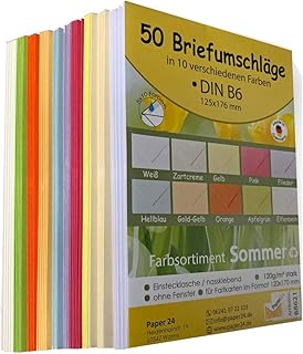 Lot de 50 enveloppes assorties DIN B6 125 x 176 mm 5 x 10 couleurs pour mariage, anniversaire 88621