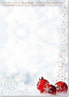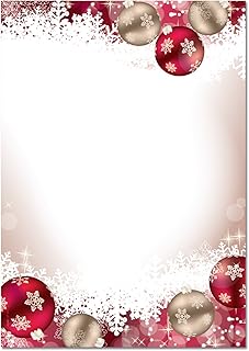SIGEL DP039 Papier à lettre de Noël, boules de Noël, 21 x 29,7 cm, 90g/m², blanc et rouge, 25 feuilles