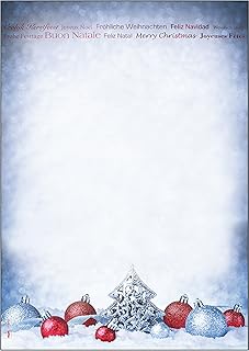 SIGEL DP086 Papier à lettre de Noël, décorations de Noël, 21 x 29,7 cm, 90g/m², argenté, bleu et rouge, 25 feuilles