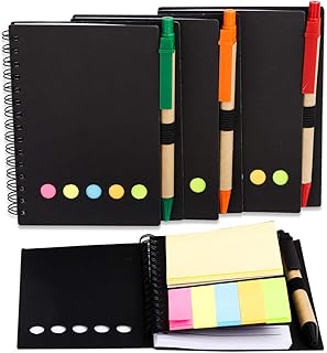 Carnet Cahier à Spirales 4 pack couverture en papier Kraft Steno journal bloc-notes de poche avec stylo et Kawaii Notes autocollantes mignonnes Bloc-notes Mémo pour Travail de bureau d'école(Black)