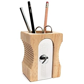 Suck UK Pot à crayons design Taille-crayons géant Beige et chrome Bois et métal acier inoxydable