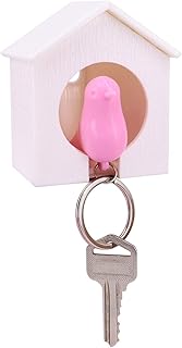 Décoration murale Mini Nid d'amour Bird Porte-clés avec 1 Sifflet, Sparrow Maison Porte-clés (Blanc Maison Rose Bird)