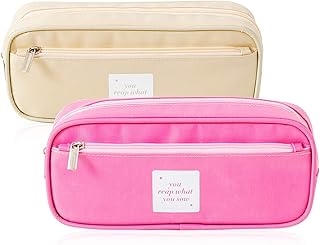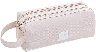 iSuperb Trousse à Crayons Grande Capacité Pencil case Trousse à Maquillage Organisateur Porte-crayons à Stylos Trousse à Maquillage pour Fournitures de Bureau pour le Collège (Beige + Rose)
