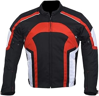 NORMAN Hommes Veste de Moto Imperméable Textile Motard Ce Renforcé Cordura Rouge/Noir