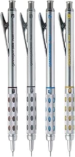 Pentel taille assorties Graphgear 1000 Automatique Mécanique professionnel de rédaction Crayon rétractable Grip en caoutchouc rechargeable (1 de chaque taille – 4 Stylos – 0,3, 0,5 mm, 0,7 mm et 0,9 mm)