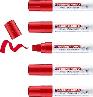 edding 4090 Marqueur craie liquide - rouge - 5 feutres craie liquide - pointe biseautée 4-15 mm - feutre craie effacable pour écrire sur les vitres,le verre, les ardoises