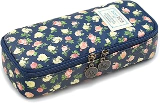 TOOGOO Trousse a crayons, Trousse a stylo en motif de rose fleur Pochette de maquillage Boite a fermeture a glissiere Trousse de rangement de bureau bleu