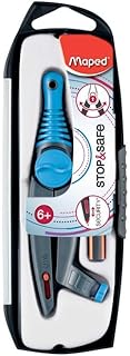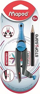 Maped - Compas Stop & Safe - Compas avec Système de sécurité automatique - Compas Dès 6 ans - Compas bague avec Mini Crayon à Papier + Livret Rosaces - Coloris Aléatoire