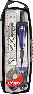 Maped Coffret Compas Technic 4 pièces - Compas Mine + Bague Universelle + Taille-mines + Etui-mines - Compas Branches Pliables et Blocage des Branches
