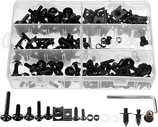 Asudaro 198PCS Kit de boulons de carénage de moto, Kit d'écrous de vis de moto, Kit de boulons Clips de fixation Vis, Boulons à tête creuse, Boulons à tête ronde, Boulons de bride