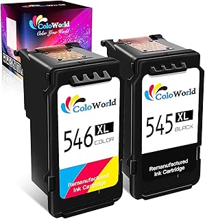 ColoWorld Remanufacturée 545 XL Noir 546 XL Couleur Cartouches d'encre pour Canon PG-545XL CL-546XL Multipack pour Canon Pixma MG3050 2550S 2550 2450 2950 TR4550 TS3150 MX495 iP2850 TS205 Imprimeurs